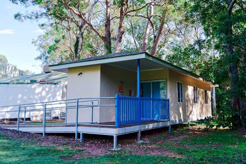 Immersed amoungst trees, Waratah Cabin can host students in small groups of four in each room.